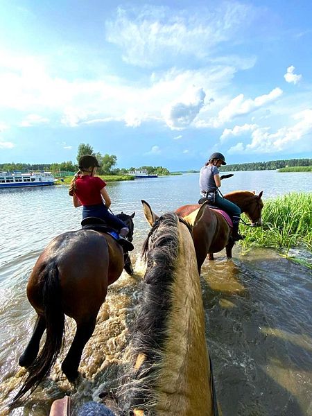 Для детей идеально подходят шетлендские пони, которые известны своей добротой и выносливостью. Для старших детей и их родителей организуются занятия и прогулки, а в жаркие дни возможно даже купание лошадей.